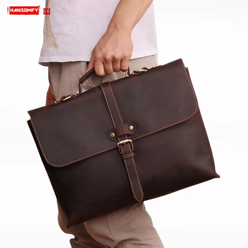 Check out our sale items Business leather men's briefcase Men handbags 15.6 inch laptop bag male shoulder messenger bag craz and enjoy clear pleasing Shipping on